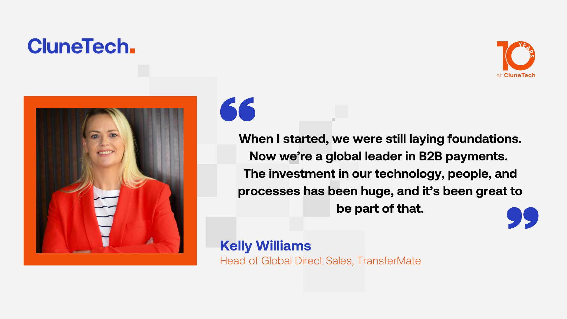 This month we caught up with TransferMate's Head of Global Direct Sales, Kelly Williams who has been on our team for the last 10 years.