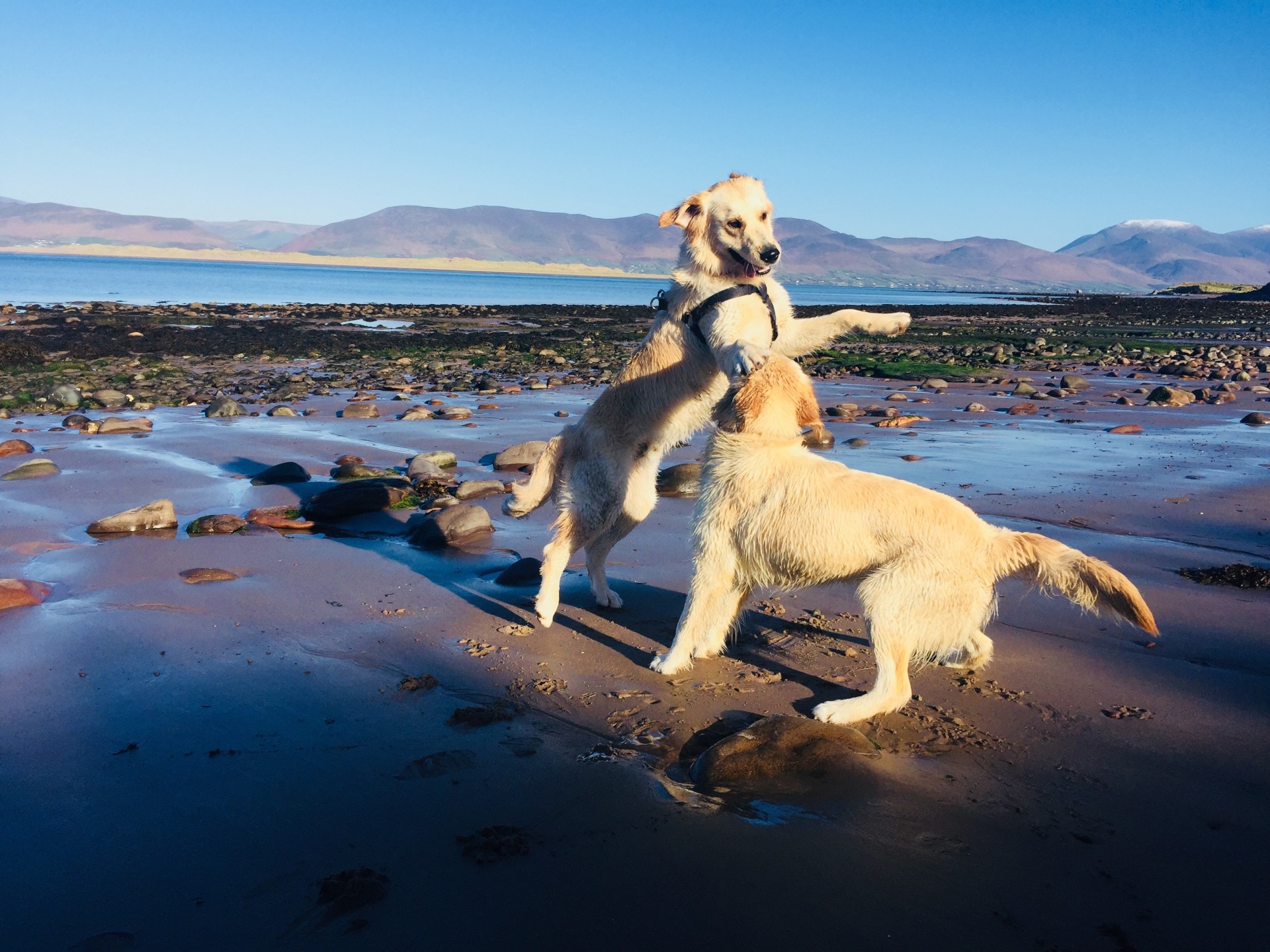 “This picture comes from a very simple story! During the Summer, my wife, daughter, our Golden Retriever (Josh) and myself, were down on Dooks beach, Co. Kerry. It was very early, but there we randomly met a lady with a young child and a Golden Retriever called Fiadh! The two dogs were of the same age and started to play and chase each other into the sea! The lady was under a bit of pressure with her young child, so we offered to bring Fiadh with us on our walk and drop her back to her house which we could see from the beach! We continued down the strand taking great pictures and videos of the dogs sprinting and jumping on the doons and into the sea – they couldn’t have been happier! It was Josh's first holiday romance!” 😊